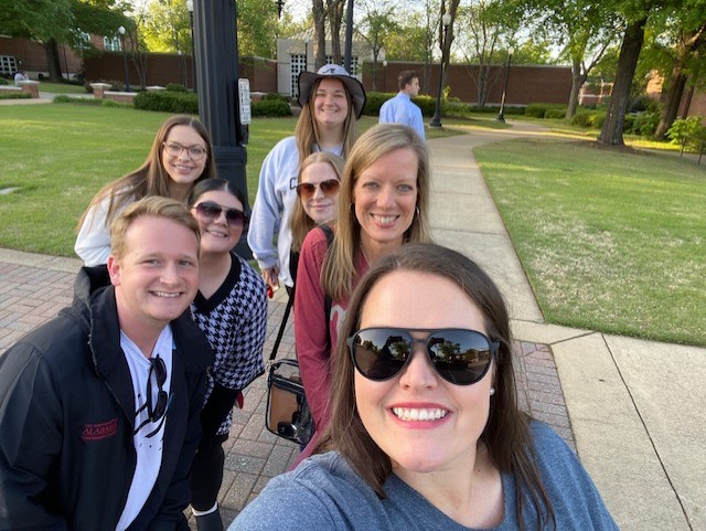 We are the UA Online Marketing team. We have a creative group that loves any excuse to celebrate, connect and move together! Because we’re located on the third floor, most of us choose the stairs instead of the elevator to build in extra movement throughout the day. We also walk together every Friday to Lakeside for lunch, which helps us get steps in and enjoy a variety of healthy dining options. Beyond that, we regularly line dance together and even has a shared line-dancing YouTube playlist we use at work and at home. We sign up for as many 5Ks as possible and encourage each other through training and on race day. We also promote walking meetings. Four team members use standing desks, and our department has a walking workstation that we take advantage of daily.